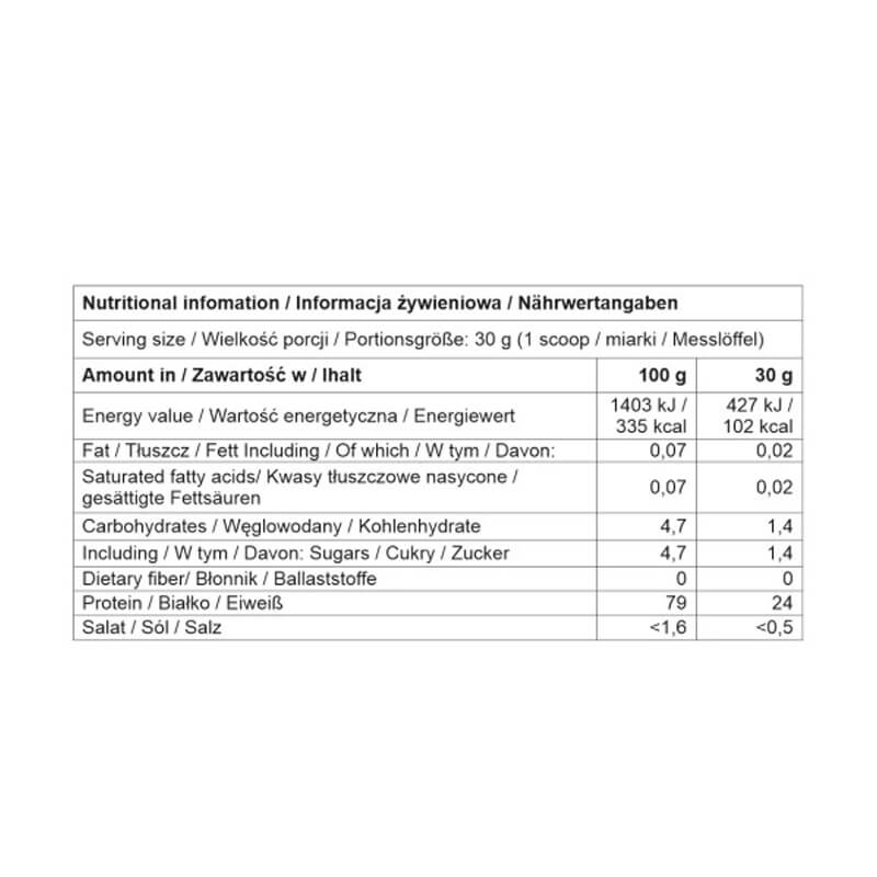 - Ponad 80% czystego białka w suchej masie!